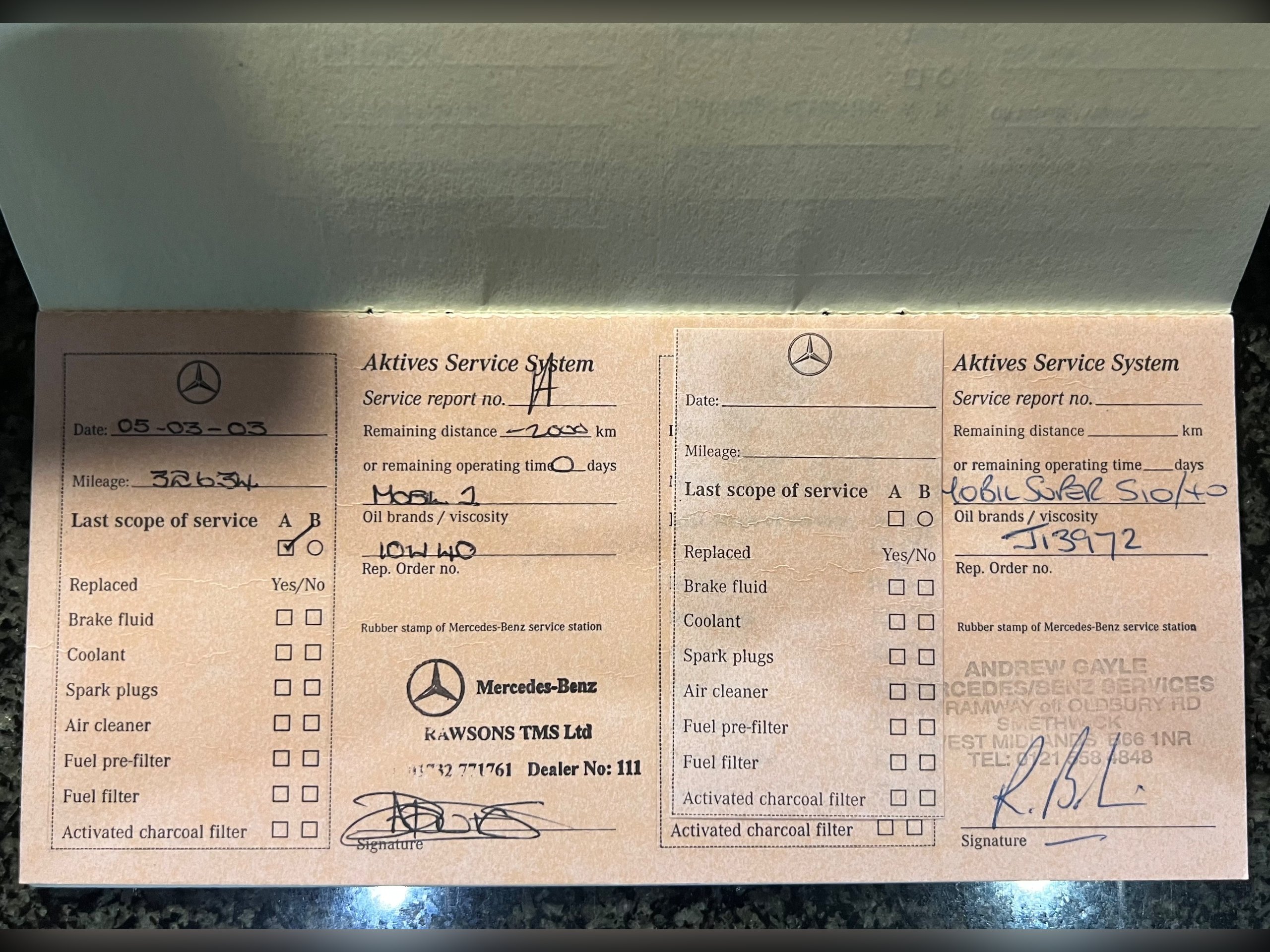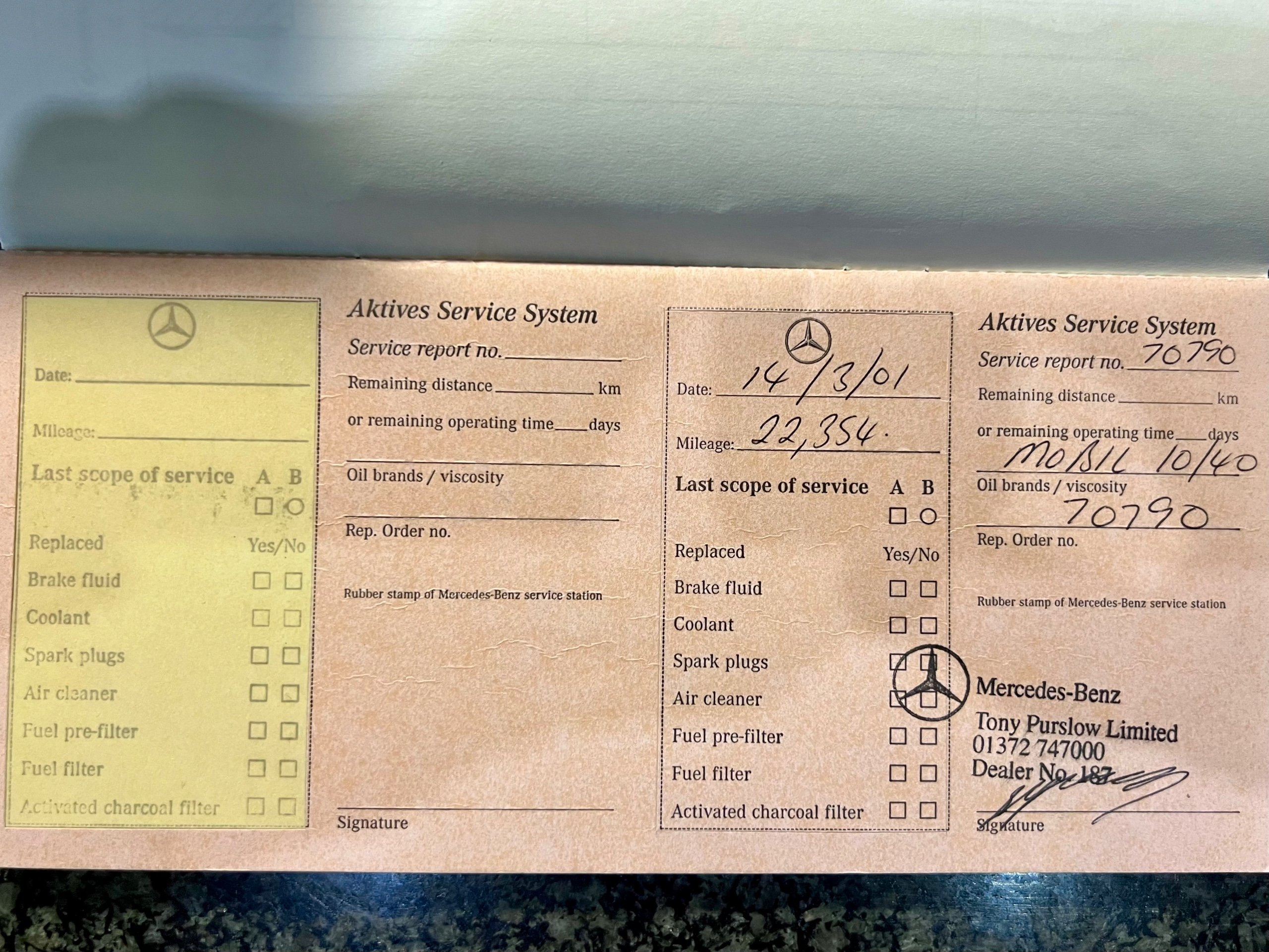 This superb, low-mileage Mercedes-Benz SL320 (R129) is now available for sale following long-term ownership. Registered in March 1999, it has been in the devoted care of its second owner for the past 22 years—a clear testament to the way it has been cherished and meticulously preserved. Having covered just 48,000 miles from new, this exceptional example of the R129 SL benefits from a high factory specification. Highlights include heated multi-contour seats, electrically adjustable seats with three-position memory for both driver and passenger, Xenon headlights, and electrically folding mirrors—ideal for narrower garage spaces. Finished in timeless Brilliant Silver Metallic paint (code 722) with a Light Grey Nappa leather interior, the car is further distinguished by the highly desirable Panoramic Glass Hard Top. This rare feature floods the cabin with natural light, enhancing the sense of space and adding an extra layer of refinement. Beautifully presented throughout and supported by a solid service history detailing works carried out over the years, this SL320 represents a rare opportunity for the discerning enthusiast or collector. With only two owners from new and clear signs of careful ownership, it’s a car that stands out not only for its condition and specification, but also for its provenance. Please get in touch for further details or to arrange a viewing. -