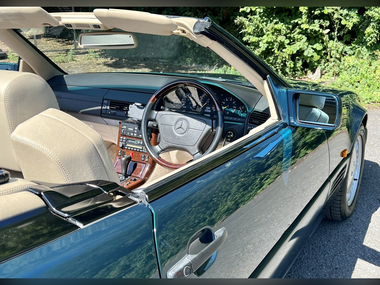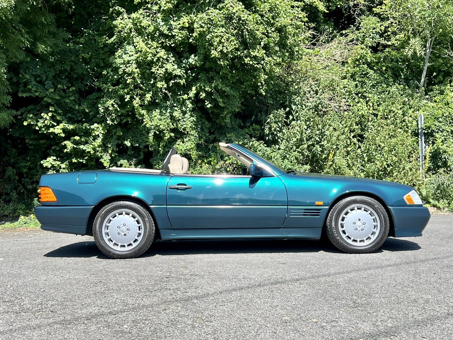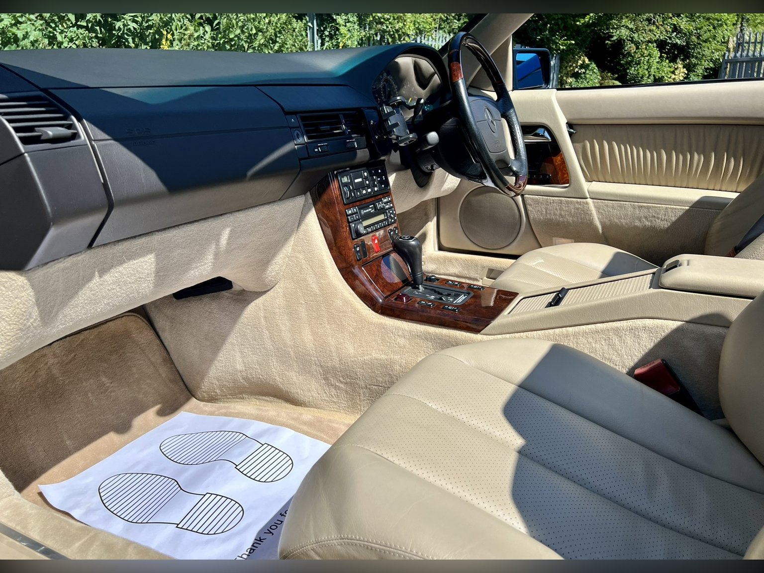 *SOLD - Similar Cars Desired*. Registered in November 1994 (1995 MY) this Mercedes-Benz SL500 R129 series has the incredibly low mileage of just 20,200 miles. Supplied from its most recent owner of seven years, this SL500 has a high factory specification that includes automatic climate control (581), electric memory position seats (241,242), heated seats (873), multi contour seats (404,405) & the rarely optioned orthopaedic seat backrest L&R (406), a wood/leather steering wheel, cruise control and rear seats (565). Finished in Tourmaline Green (269) with contrasting Beige Leather (275A) interior & black mohair soft top. The factory original MB Exquisite (Panasonic) radio/cassette unit (511) is fitted & is paired with the original Alpine CD multi changer (819) located in the boot. The full tool kit, first aid kit and mesh draft breaker & holder are also present. As you’d expect of an SL R129 with 20k miles, the interior is unmarked and presents accordingly with lustrous walnut wood veneer and supple leather seating & door cards. The headlining & trim of both hard & soft tops are unmarked. The interior is just a wonderful place to be in this car & nostalgically takes one back to that day in November 1994 when the car was collected by its first owner. Supplied with its full book pack in which a fully stamped service booklet is accompanied by an additional service booklet. Having been owned by collectors prior, as you’d expect a large history file is also present containing receipts from works carried out during its lifetime. If that’s not enough you will be satisfied to know that each MoT certificate is also present from 1997 & all of this detailed history is presented in a series of three very well organised folders. One for the fastidious collector this SL500 R129 with just 20k miles will be the key addition to any top level collection of Mercedes-Benz. Do enquire for further details or to arrange a viewing.