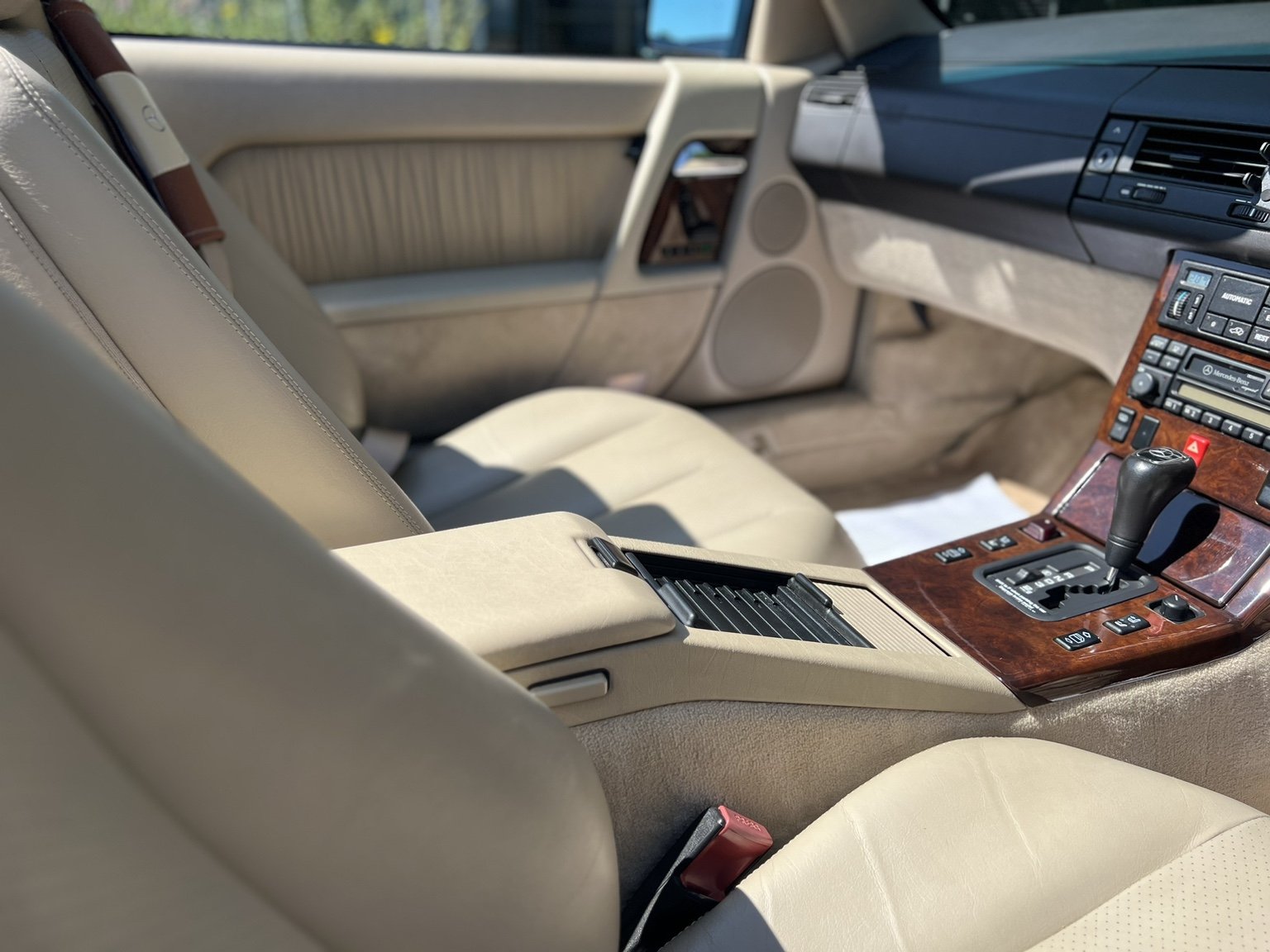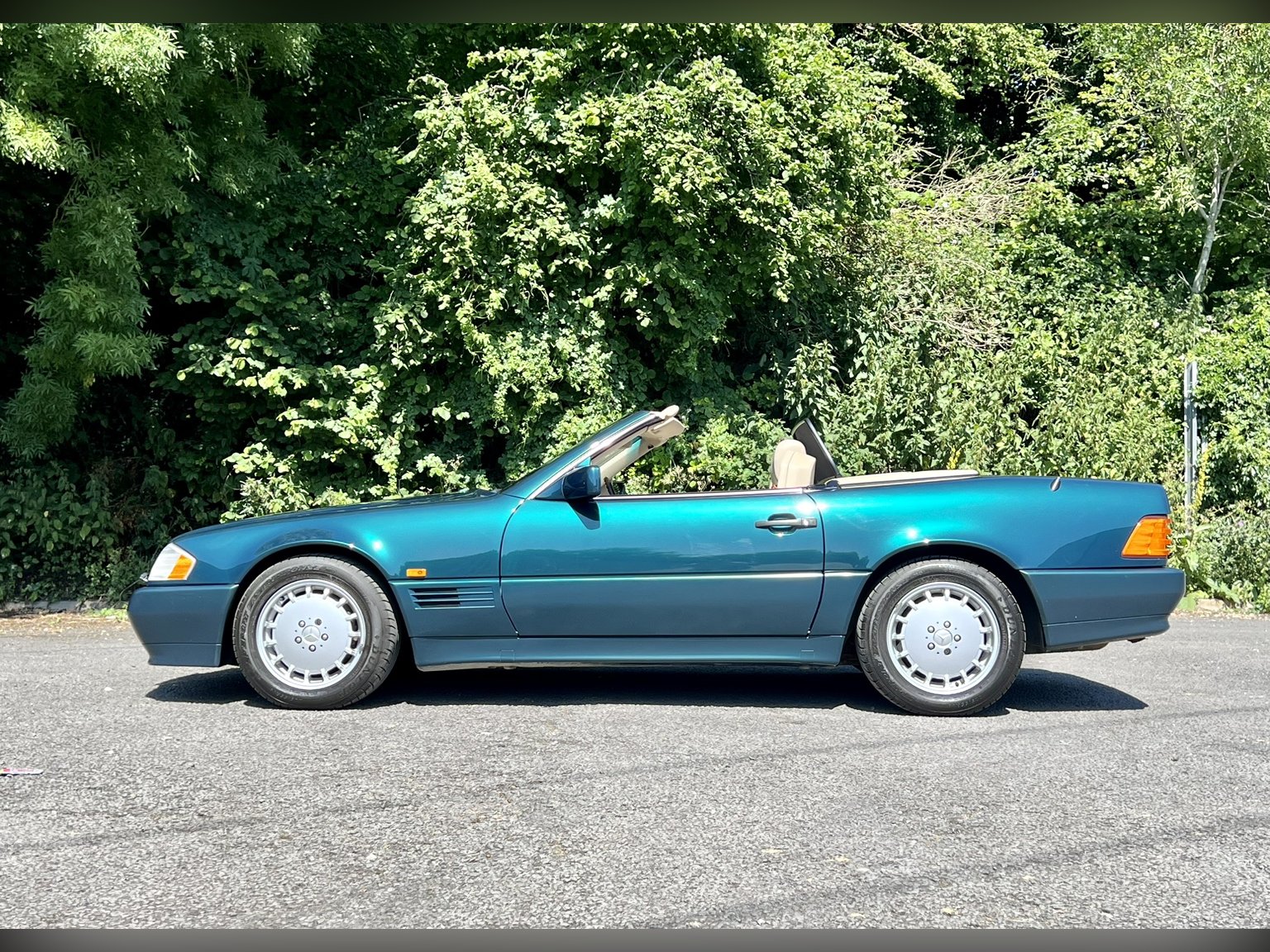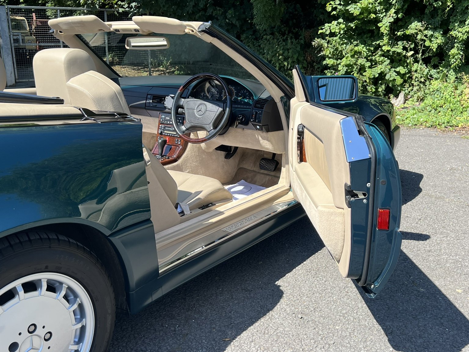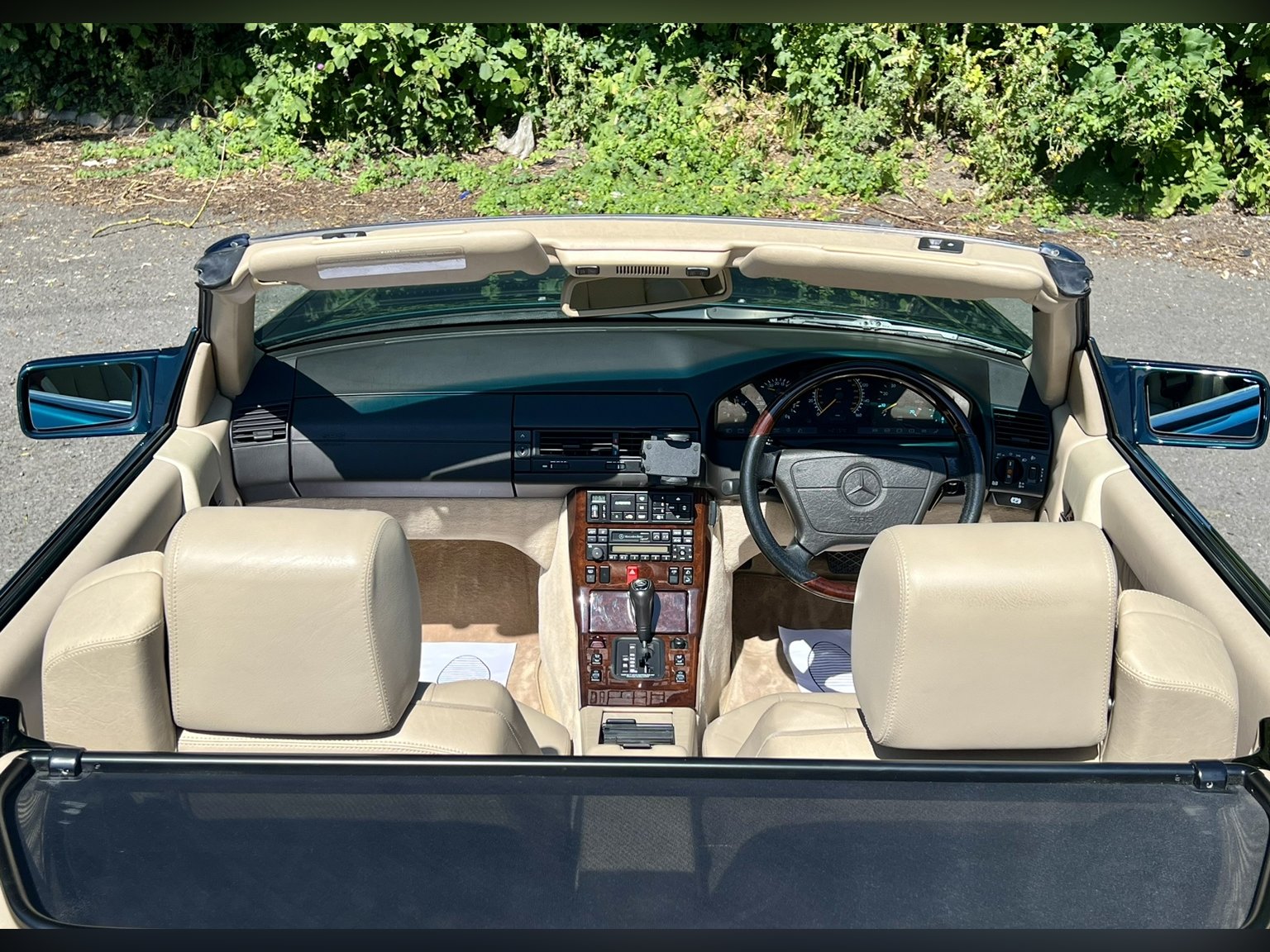 *SOLD - Similar Cars Desired*. Registered in November 1994 (1995 MY) this Mercedes-Benz SL500 R129 series has the incredibly low mileage of just 20,200 miles. Supplied from its most recent owner of seven years, this SL500 has a high factory specification that includes automatic climate control (581), electric memory position seats (241,242), heated seats (873), multi contour seats (404,405) & the rarely optioned orthopaedic seat backrest L&R (406), a wood/leather steering wheel, cruise control and rear seats (565). Finished in Tourmaline Green (269) with contrasting Beige Leather (275A) interior & black mohair soft top. The factory original MB Exquisite (Panasonic) radio/cassette unit (511) is fitted & is paired with the original Alpine CD multi changer (819) located in the boot. The full tool kit, first aid kit and mesh draft breaker & holder are also present. As you’d expect of an SL R129 with 20k miles, the interior is unmarked and presents accordingly with lustrous walnut wood veneer and supple leather seating & door cards. The headlining & trim of both hard & soft tops are unmarked. The interior is just a wonderful place to be in this car & nostalgically takes one back to that day in November 1994 when the car was collected by its first owner. Supplied with its full book pack in which a fully stamped service booklet is accompanied by an additional service booklet. Having been owned by collectors prior, as you’d expect a large history file is also present containing receipts from works carried out during its lifetime. If that’s not enough you will be satisfied to know that each MoT certificate is also present from 1997 & all of this detailed history is presented in a series of three very well organised folders. One for the fastidious collector this SL500 R129 with just 20k miles will be the key addition to any top level collection of Mercedes-Benz. Do enquire for further details or to arrange a viewing.