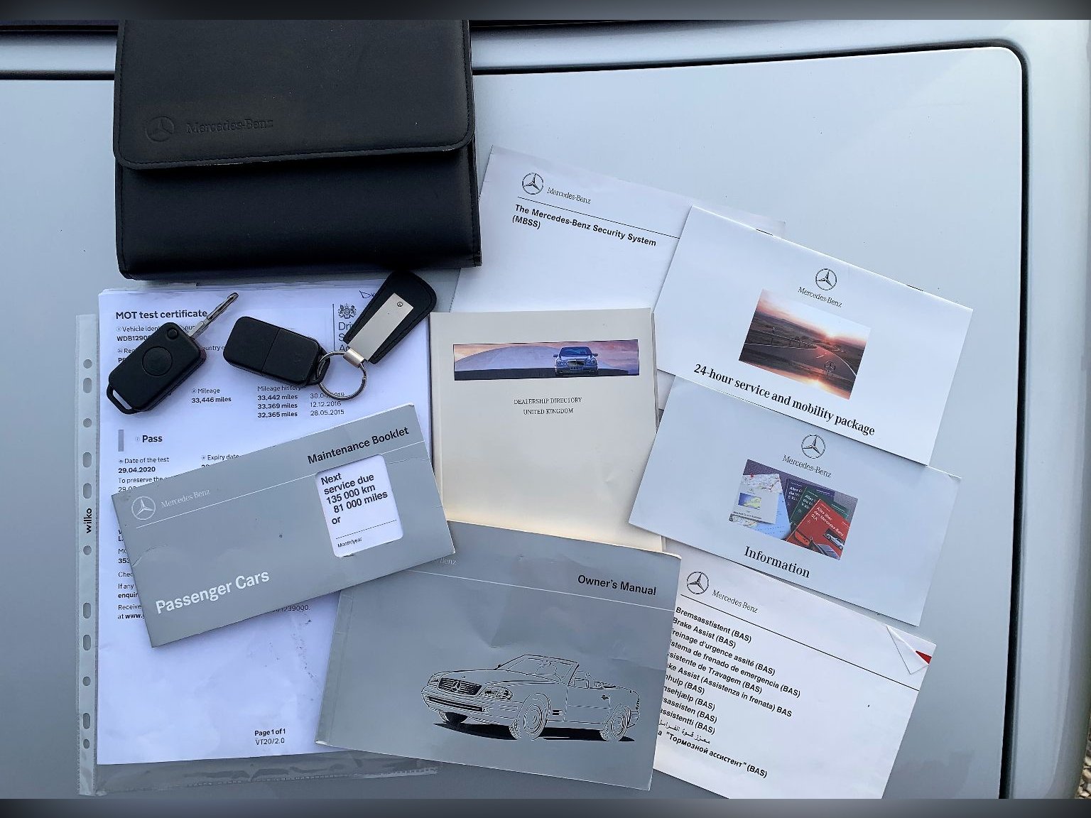 SOLD - SIMILAR CARS DESIRED. This series R129 SL500 was registered from new in June 1997 here in the UK where it has remained for the entirety of its 23 years. Finished in Brilliant Silver metallic paint (744) complemented by contrasting black leather interior. With only 3 previous owners the car has covered a mere 38k miles whilst retaining a comprehensive service history from both Mercedes-Benz main dealer & service specialists. All of the cars equipment is in full working order, including the air conditioning and heated front seats. The black soft folding mohair roof is unmarked, the original plexi windows without cuts or blemishes, and the mechanism operates quickly & precisely to provide that open air driving experience. In addition to its already generous standard specification this car also has an upgraded Kenwood DAB radio with Bluetooth connectivity, with factory options including driver and passenger heated memory position seats, climate control, wind deflector and staggered width AMG alloy wheels. A particular feature of this car is the factory original Panoramic hard top, which allows the occupants to enjoy a clear & wide view of the hopefully sunny skies above. Supplied with its service booklet and book pack this low mileage, low owner example of an R129 SL500 is a rare opportunity. This car is in superb condition throughout and would make a very worthy addition to the most special of car collections. Please call for more details or to arrange a viewing.